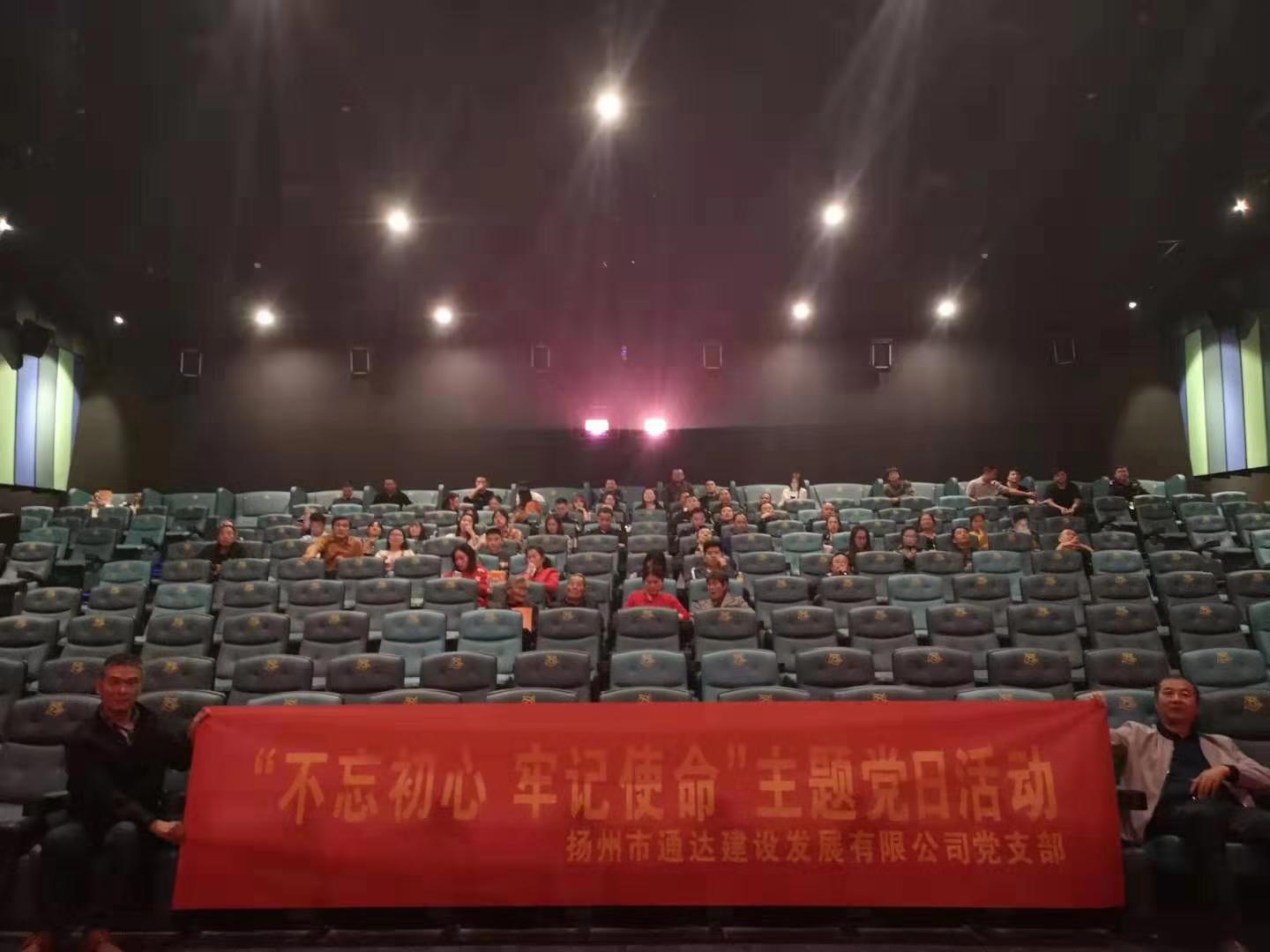 为弘扬爱国主义精神,激发广大职工爱国热情,不断丰富“不忘初心、牢记使命”主题教育活动的内容和方式,扩大教育面,扬州市通达建设结合公司主题党日活动,组织全体职工观看了爱国影片《我和我的祖国》。