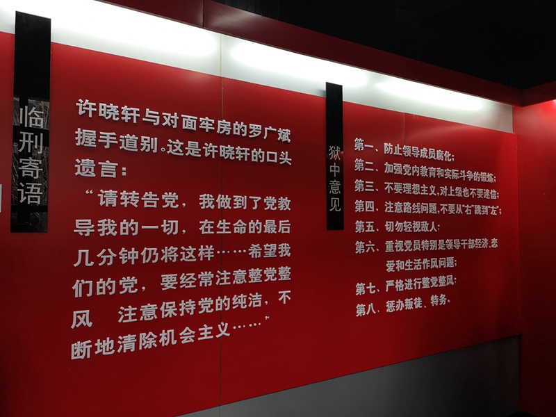 在故居内,大家先后了解了许晓轩烈士的生平,参加革命的过程,以及在狱中坚贞不屈斗争的经历,最终大家将目光停留在许晓轩的“临刑寄语”和“狱中八条意见”上,这是革命烈士在牺牲前用血的教训凝结成的向党提出的希望和意见。要保持党的纯洁,防止领导成员腐化,加强党内教育和实际斗争的锻炼等等。